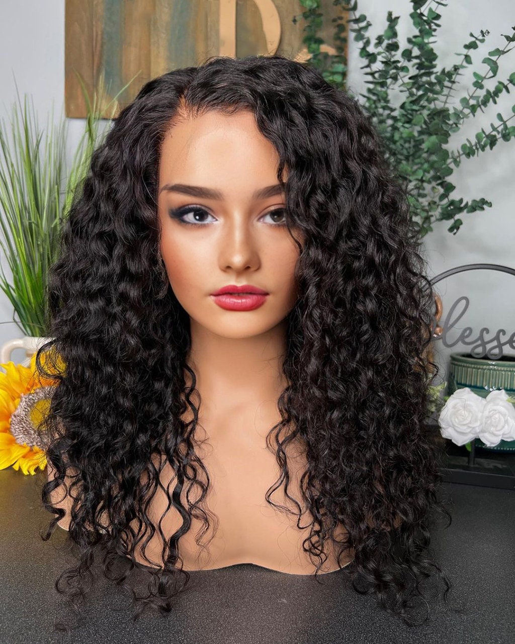 High Density Black Wig Curly Human Hair Wigs Water Wave Etsy